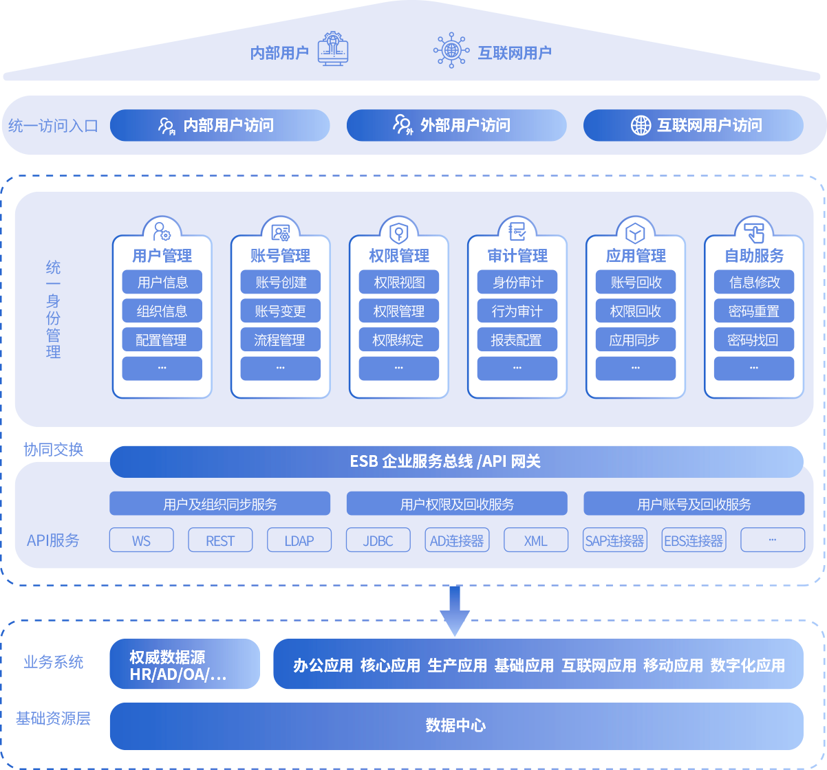 构建统一身份管理,减少因人员身份管理不规范带来的信息安全风险、隐私风险及经营风险